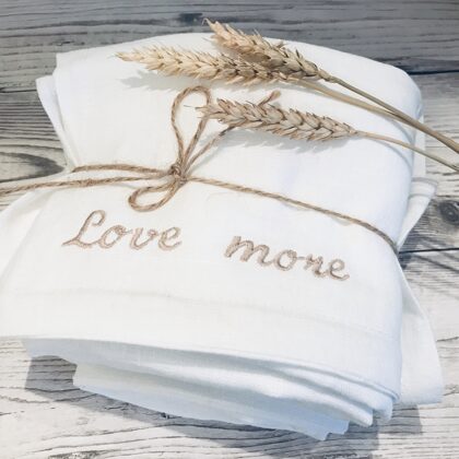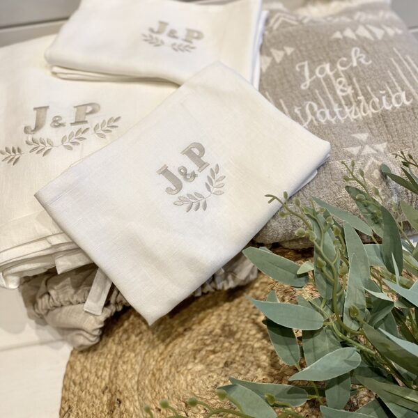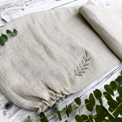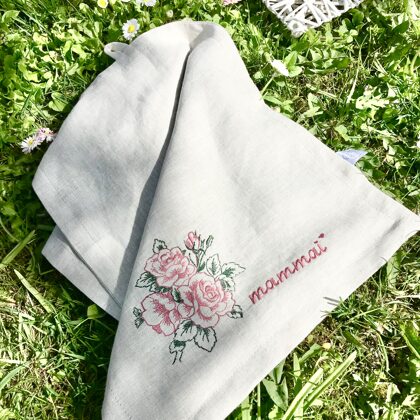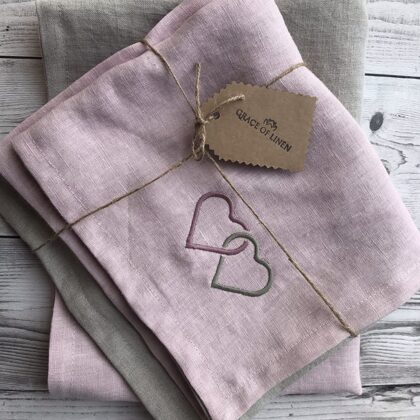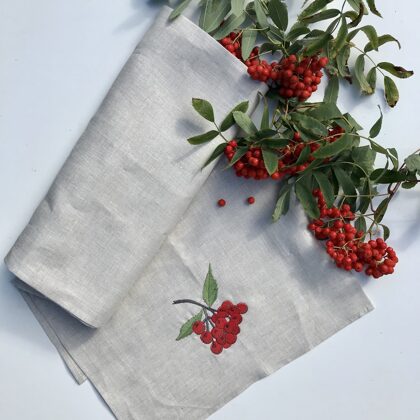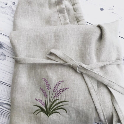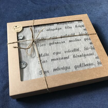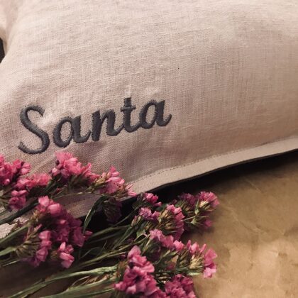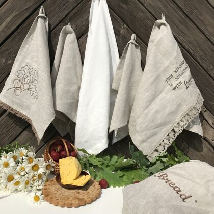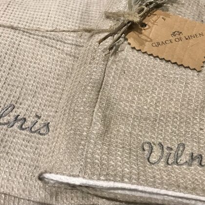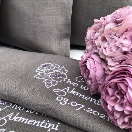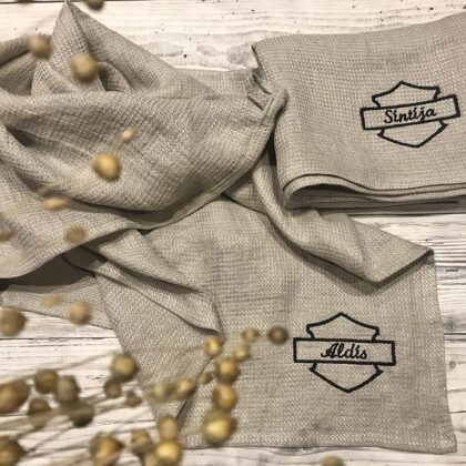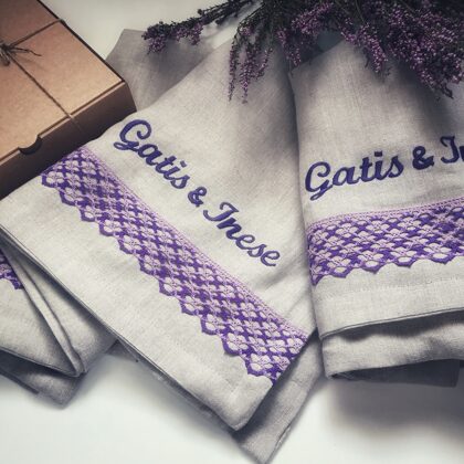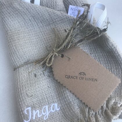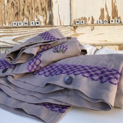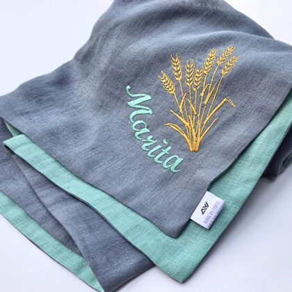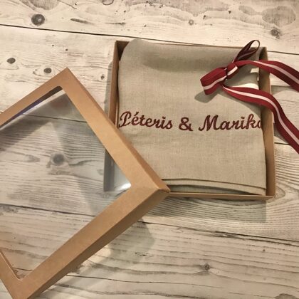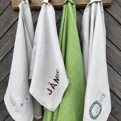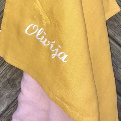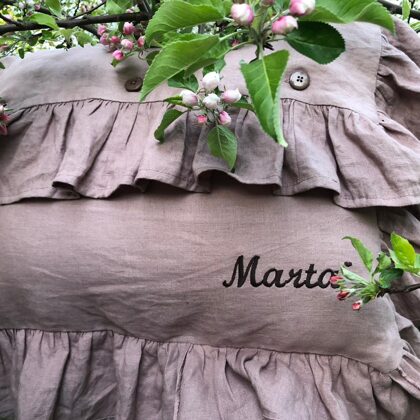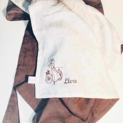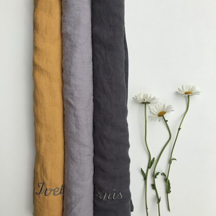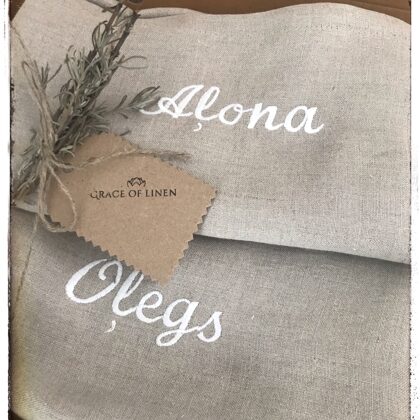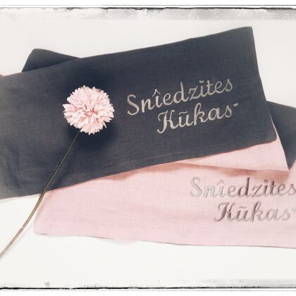 Par papildus pieejamajām lina auduma krāsām un izšuvumiem, droši sazinies!